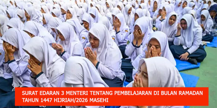 Jakarta, t-media.id | Pemerintah menerbitkan Surat Edaran Bersama (SEB) tiga menteri tentang pembelajaran selama Ramadan 1447 Hijriah/2026 Masehi. Aturan ini mengatur skema belajar mandiri di awal Ramadan, kegiatan sekolah selama bulan puasa, hingga jadwal libur Idulfitri.