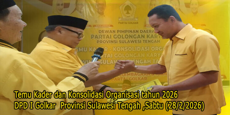 PALU, t-media.id – Dewan Pimpinan Daerah (DPD) I Partai Golongan Karya (Golkar) Provinsi Sulawesi Tengah resmi menggelar agenda “Temu Kader dan Konsolidasi Organisasi” tahun 2026. Bertempat di Kantor DPD I Golkar Sulteng, Jalan Moh. Yamin, Kota Palu, Sabtu (28/2), kegiatan ini mengusung tema sentral “Penguatan Kelembagaan dan Kader Partai Golkar”.
