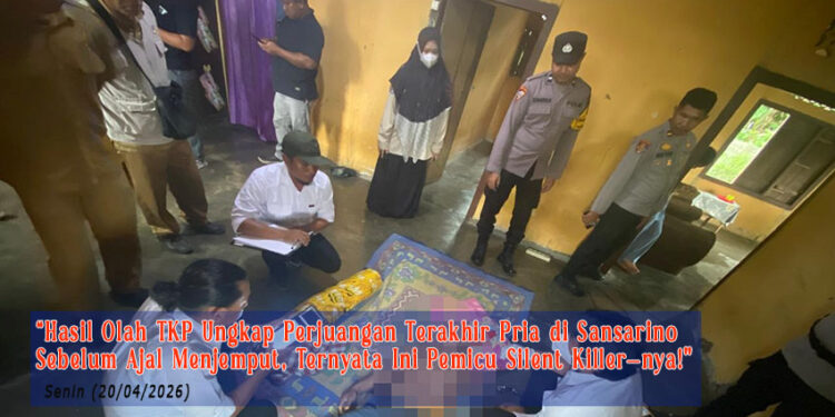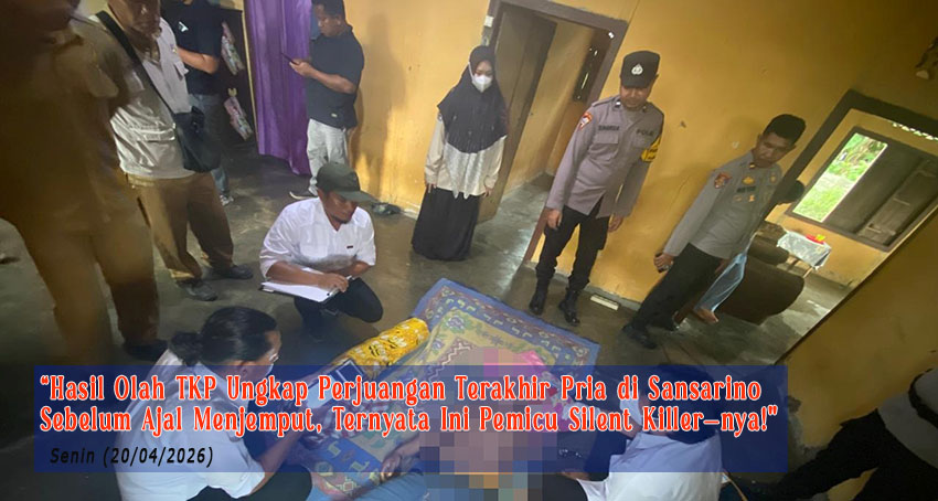 t-media.id, AMPANA | Senin (20/04/2026) pagi yang tenang di Desa Sansarino, Kecamatan Ampana Kota, mendadak berubah menjadi suasana duka yang mencekam. Seorang pria berinisial A.M.I (45), yang tengah bertamu di kediaman kerabatnya, ditemukan tak bernyawa setelah sempat mengeluhkan rasa sakit yang luar biasa.