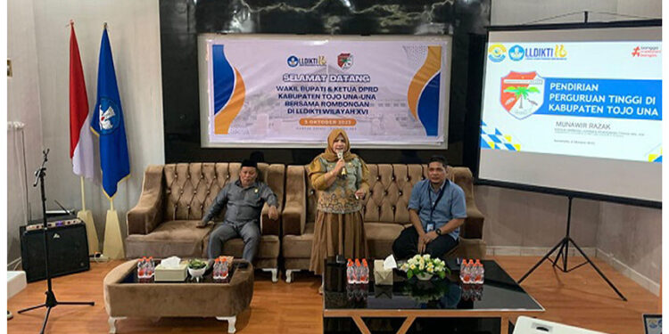 (t-media.id) TOUNA – Pemerintah Kabupaten Tojo Una-Una menaruh perhatian besar pada peningkatan kualitas sumber daya manusia (SDM) melalui penguatan pendidikan vokasi. Wakil Bupati Tojo Una-Una, Hj. Surya, secara intensif melakukan koordinasi dengan Lembaga Layanan Pendidikan Tinggi (LLDIKTI) Wilayah XVI Gorontalo untuk mempercepat pendirian politeknik di daerah tersebut.