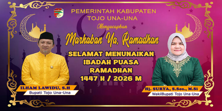 t-media.id | Pemerintah Kabupaten Tojo Una-Una menyampaikan ucapan selamat menunaikan ibadah puasa 1447 Hijriah kepada seluruh masyarakat. Momentum Ramadhan dinilai sebagai kesempatan memperkuat keimanan, mempererat silaturahmi, serta menumbuhkan kepedulian sosial.