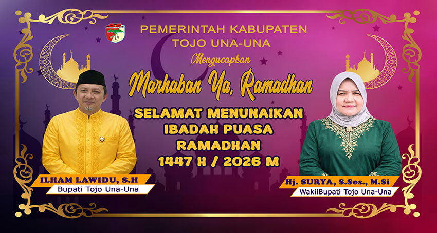 t-media.id | Pemerintah Kabupaten Tojo Una-Una menyampaikan ucapan selamat menunaikan ibadah puasa 1447 Hijriah kepada seluruh masyarakat. Momentum Ramadhan dinilai sebagai kesempatan memperkuat keimanan, mempererat silaturahmi, serta menumbuhkan kepedulian sosial.