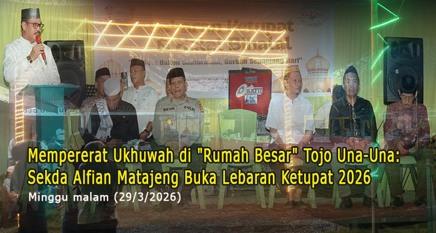 t-media.id, RATOLINDO | Aroma janur dan kuah santan belum beranjak dari dapur-dapur warga di Kelurahan Uentaga Atas, Kecamatan Ratolindo, Minggu malam, 29 Maret 2026. Di Lingkungan II, ratusan warga berkumpul, bukan sekadar untuk menyantap kudapan khas pasca-Lebaran, melainkan untuk merawat apa yang disebut Sekretaris Daerah Tojo Una-Una, Alfian Matajeng, sebagai “Rumah Besar.”