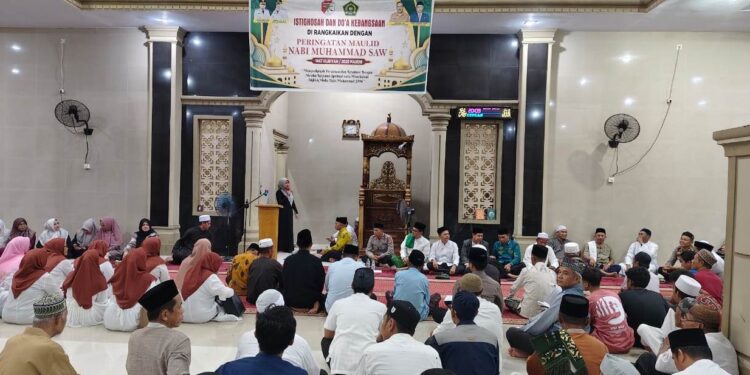 Pernyataan ini disampaikan Wakapolres Kompol Mulyadi saat menghadiri sekaligus menyampaikan sambutan kapolres tojo una-una pada acara istighosah dan do’a kebangsaan dirangkaikan dengan peringatan Maulid Nabi Muhammad SAW 1447 Hijriah /2025 Masehi dimesjid Tsamaratul Ukhuwah Kelurahan Muara Toba pada Kamis (4/9/2025) Ia menekankan bahwa peringatan Maulid Nabi adalah momen tepat untuk meneladani ajaran Rasulullah SAW, khususnya dalam hal menjaga kerukunan berbangsa dan bernegara