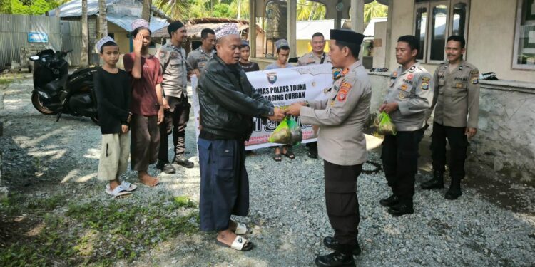 t-media.id TOUNA – Dalam Rangka Hari Raya Idul Adha 1446 H, Sat Binmas Polres Tojo Una Una melaksanakan penyembelihan hewan kurban di Desa Labuan Kecamatan Ratolindo Kabupaten Tojo Una Una, Sabtu (07/06/2025).