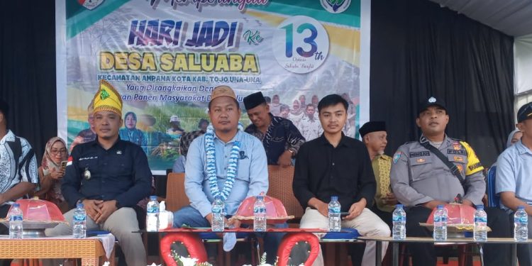 Ampana Kota, [ t-media.id ] – Desa Saluaba, Kecamatan Ampana Kota kembali semarak dengan pelaksanaan peringatan hari jadi yang ke-13 sekaligus syukuran atas panen masyarakat Desa Saluaba. Kegiatan yang dilaksanakan pada tanggal 12 Oktober 2024 ini merupakan moment spesial masyarakat setempat sebagai bagian dari kegiatan rutin setiap tahun dalam kerangka menjalin tali silaturahmi antar sesama juga warga dapat menikmati hidangan hasil panen masyarakat.