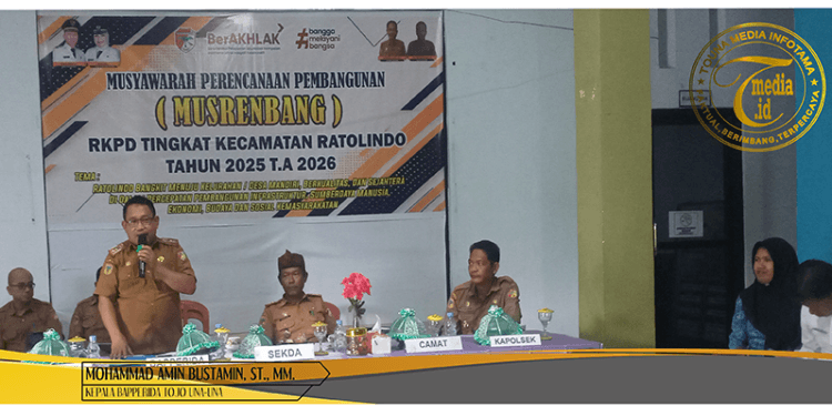 “Olehnya saat ini kami berupaya secepatnya menyusun RKPD Perubahan dan menyusun RKPD 2026 untuk dilaksanakan ditahun 2026 yang saat ini sedang kita Musrembangkan, termasuk kurang lebih 109 usulan yang berasal dari  6 Kelurahan dan 4 desa se Kecamatan Ratolindo yang nantinya akan kami bahas ke kegiatan selanjutnya di forum OPD, tingkat Kabupaten nanti, dan harapannya akan dihadiri langsung oleh Pak Bupati Terpilih bersama Wakil Bupati Terpilh  bersama-sama kita nanti dalam rangka bagaimana membedah semua usulan-usulan ini, karena kami tahu persis beliau, dua periode di DPRD, satu periode wakil Bupati, dan beliau sangat teliti terkait dengan semua kegiatan-kegiatan yang ada di OPD”, Tutupnya