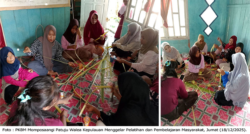 Walea Kepulauan, (t-media.id) — Pusat Kegiatan Belajar Masyarakat (PKBM) MOMPOSAANGI PATUJU Walea Kepulauan menggelar pelatihan dan pembelajaran masyarakat di Desa Popolii, Kecamatan Walea Kepulauan, Kabupaten Tojo Una-Una, Jumat (18/12/2025). Kegiatan ini diikuti oleh masyarakat setempat, termasuk generasi muda, sebagai upaya melestarikan budaya lokal yang mulai jarang dipraktikkan.