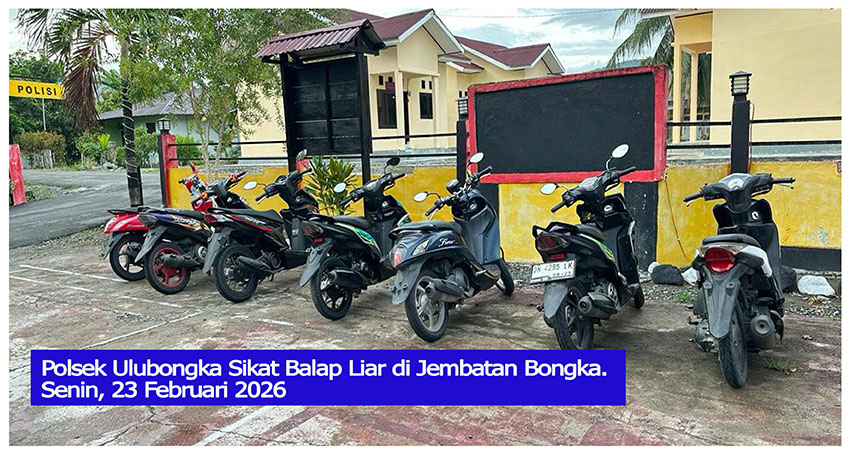 t-media.id | Aparat Polsek Ulubongka membubarkan aksi balap liar di Jalan Trans Sulawesi, tepatnya di Jembatan Bongka, Desa Tampanombo, Kabupaten Tojo Una-Una, Senin dini hari, 23 Februari 2026.
