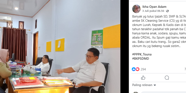 t-media.id TOUNA — Pengangkatan pegawai pemerintah dengan perjanjian kerja lingkup Pemerintah Kabupaten Tojo Una-Una (PPPK) formasi tahun 2024 tahap dua kembali menuai sorotan tajam yang diunggah lewat media soasisal.
