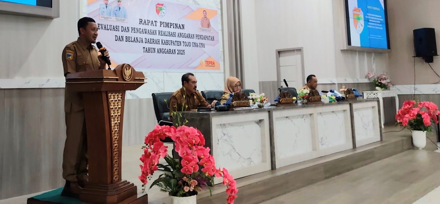 Rapat Pimpinan soal Evaluasi dan Pengawasan Realisasi APBD Kabupaten Tojo Una-Una TA. 2025 ini juga berfungsi sebagai forum konsolidasi dan koordinasi untuk membahas agenda pembangunan, mengevaluasi kinerja perangkat daerah, serta menyusun program-program strategis pemerintah daerah mempertemukan para pemangku kepentingan di lingkungan pemerintah daerah untuk menyelaraskan langkah dan memastikan target pencapaian pembangunan serta tingkatkan sinergitas dan berinovasi.