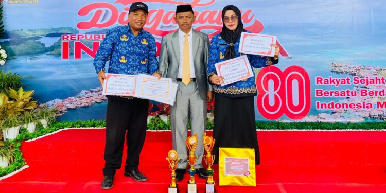 t-media.id, Ratolindo – Momentum peringatan Hari Ulang Tahun (HUT) ke-80 Republik Indonesia di Alun-Alun Bumi Mas Uemalingku, Minggu (17/08), menjadi semakin istimewa bagi keluarga besar SDN 1 Ratolindo. Pada kesempatan tersebut, sekolah yang dikenal dengan berbagai program unggulannya itu menerima piagam penghargaan langsung dari Plt. Kadis Dikpora Samudin Tanciga, SE., M.A.P, atas keikutsertaannya dalam sejumlah perlombaan.