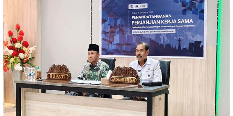 Hal ini dibuktikan kehadiran Bupati Tojo Una-Una ILHAM, S.H didampingi Sekretaris Daerah Tojo Una-Una Alfian Matajeng, S.Pd., M.A.P., pada kegiatan penandatanganan Perjanjian Kerja Sama Optimalisasi Pemungutan Pajak Pusat dan Daerah (PKS OP4D). Secara daring berlangsung di ruang rapat kantor bupati dan diikuti oleh 109 pemerintah daerah dari seluruh Indonesia pada Rabu (15/10/2025).