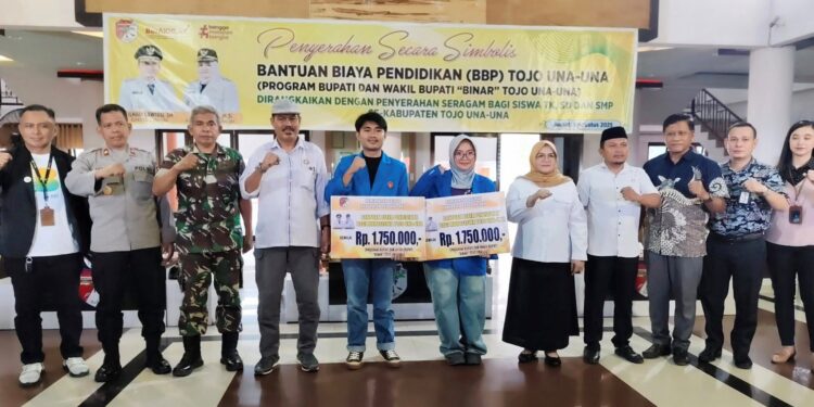 t-media.id, TOUNA – Pemerintah Kabupaten Tojo Una-Una kembali menunjukkan komitmennya dalam mendukung kemajuan pendidikan dengan menyalurkan Program BINAR (Bantuan Insentif dan Afirmasi bagi Mahasiswa Asal Tojo Una-Una), serta memberikan bantuan seragam sekolah kepada siswa tingkat TK, SD, dan SMP.