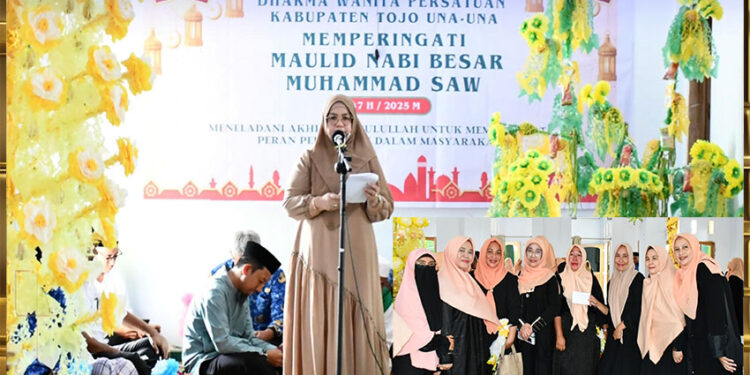 Hal tersebut disampaikan Wakil Bupati Tojo Una-Una Hj. Surya, S.Sos., M.Si., saat menghadiri peringatan Maulid Nabi Muhammad SAW 1447 Hijriah yang diselenggarakan Dharma Wanita Persatuan Kabupaten Touna (Tojo Una-Una), di Masjid Ikhlasul Amal, Kelurahan Uentanaga Atas, pada Rabu (17/09/2025).