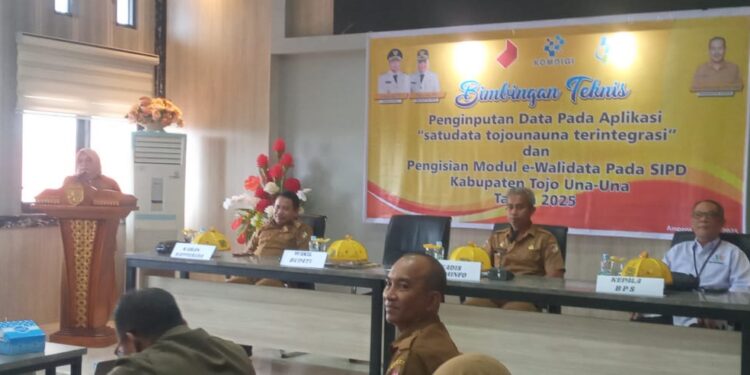 t-media.id, Touna – Pemerintah Kabupaten Tojo Una-Una (Pemkab Touna) melalui Dinas Komunikasi dan Informatika (Diskominfo Touna) bekerjasama dengan Badan Perencanaan Pembangunan, Riset, dan Inovasi Daerah (Bapperida Touna) menggelar acara Sosialisasi Penginputan Data pada Modul E- Walidata SIPD dalam rangka Peningkatan Kualitas Data Sektoral di Ruang Rapat kantor Bupati, Selasa (24/6/2025).