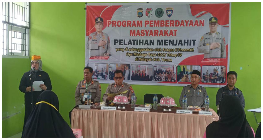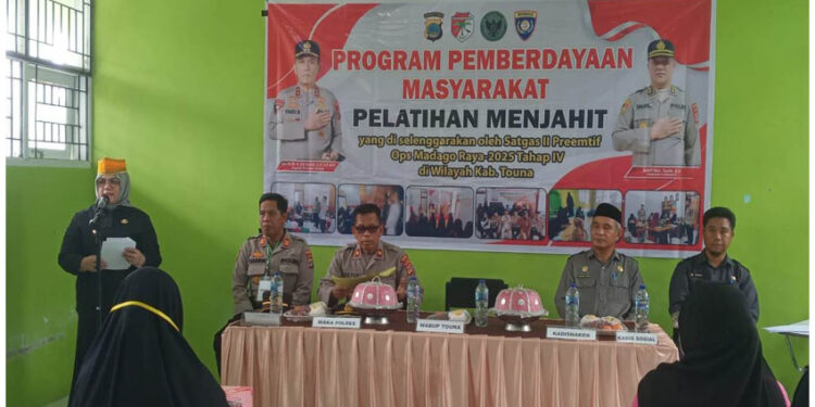 Tojo Una-Una, (t-media.id) — Pemerintah Kabupaten Tojo Una-Una terus menunjukkan komitmennya dalam mendukung pemberdayaan masyarakat melalui kegiatan yang bersifat edukatif dan humanis. Salah satunya diwujudkan lewat pelatihan menjahit bagi para istri eks narapidana teroris (napiter) yang diselenggarakan oleh Satuan Tugas (Satgas) II Preemtif Operasi Madago Raya 2025 Tahap IV, bertempat di Gedung SKB Kelurahan Dondo, Kecamatan Ratolindo, Senin (10/11/2025).