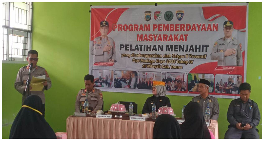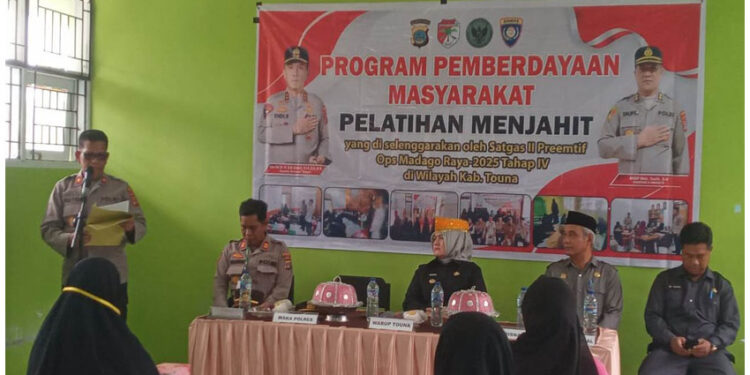 TOUNA (t-media.id) – Program pemberdayaan masyarakat Satuan Tugas (Satgas) II Preemtif Operasi Madagoraya-2025 Tahap IV resmi dimulai di Kabupaten Tojo Una Una. Berfokus pada upaya deradikalisasi, program kali ini menyelenggarakan pelatihan menjahit bagi para istri eks narapidana terorisme (Napiter).