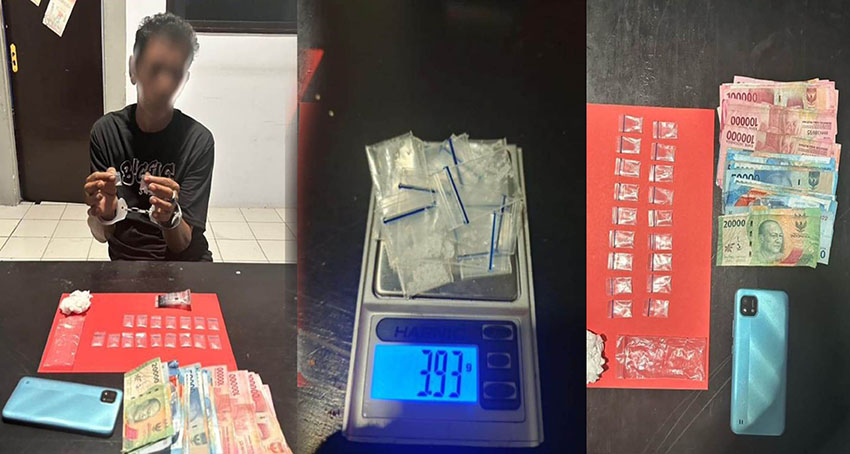 Penggerebekan yang dilakukan sekitar pukul 16.00 WITA di rumah tersangka, disaksikan aparat desa, membongkar dugaan kuat praktik peredaran narkoba. Polisi menemukan 18 paket sabu siap edar seberat 3,93 gram, uang tunai Rp4.590.000 yang diduga hasil transaksi, satu unit ponsel, serta plastik klip kosong—fakta yang memperlihatkan bahwa narkoba telah masuk hingga ke jantung permukiman warga.